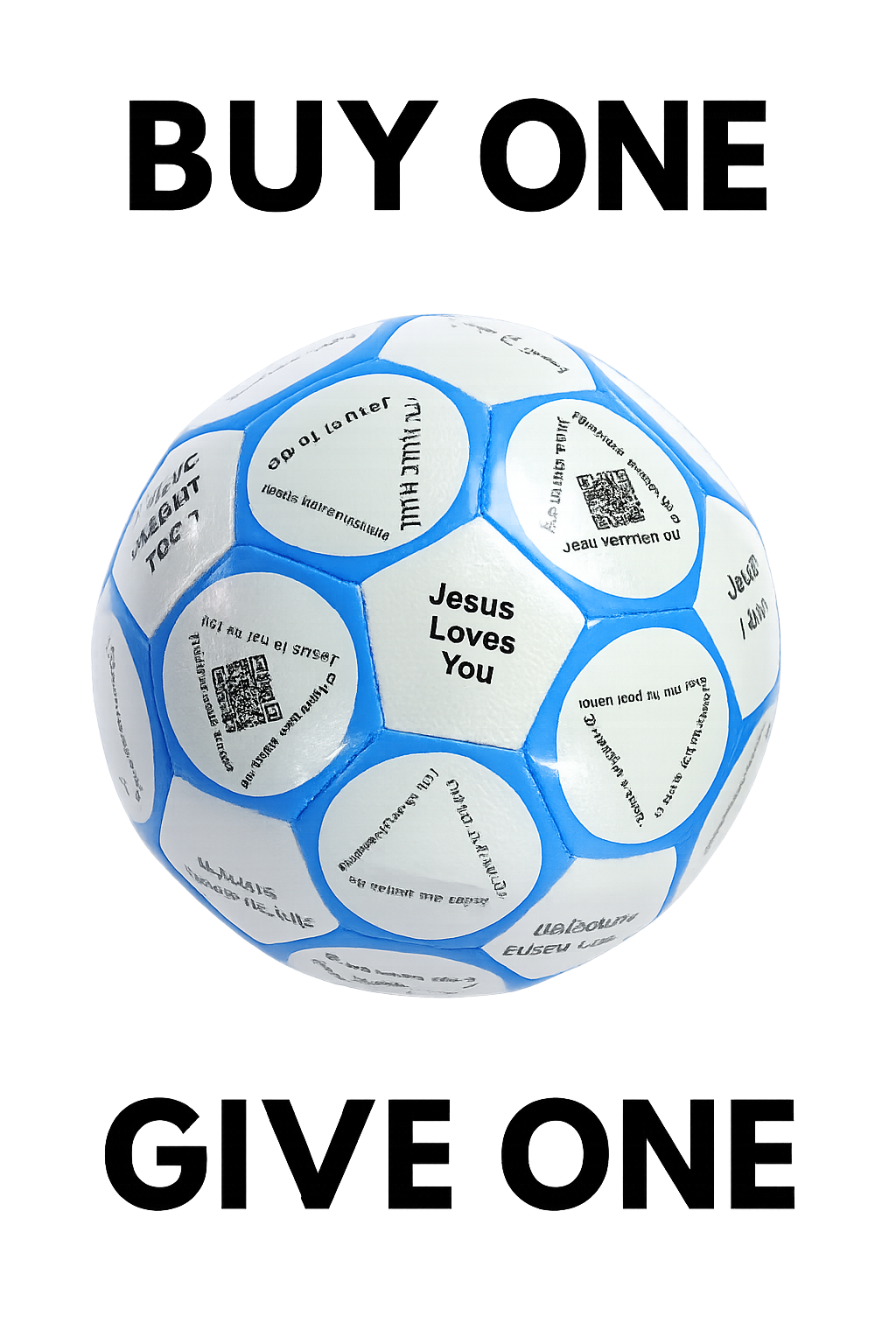 • Spiritual Conversation: Jesus Loves You written in 71 languages on the ball is a good conversation topic and powerful reminder to use soccer as a platform to share the love of Jesus. The ball has a QR code that connects to a digital spiritual conversation through videos, Bible verses, and interactive options available in 112 languages. This conversation explores the Gospel and shares how to have a personal relationship with God through faith in Jesus.